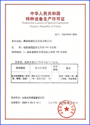 松嶺化工專注化工設(shè)備行業(yè)15年,集科研、開發(fā)、設(shè)計(jì)、 生產(chǎn)于一體的高新技術(shù)企業(yè),還具備設(shè)計(jì)、制造D1、D2類壓力容器資質(zhì)。質(zhì)量保障